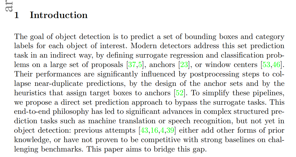 The abstract lays out the entire story of DETR in a few short sentences. It tells us what the core problem is with existing methods, what DETR’s new approach is, what its key components are, and why it matters. Let’s start with the central idea.